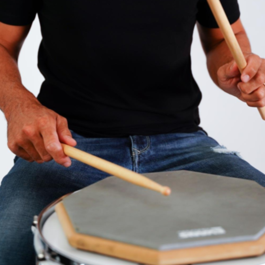 Per seguire questo corso non hai nemmeno bisogno della batteria, ti basta un semplice practice pad e le bacchette.